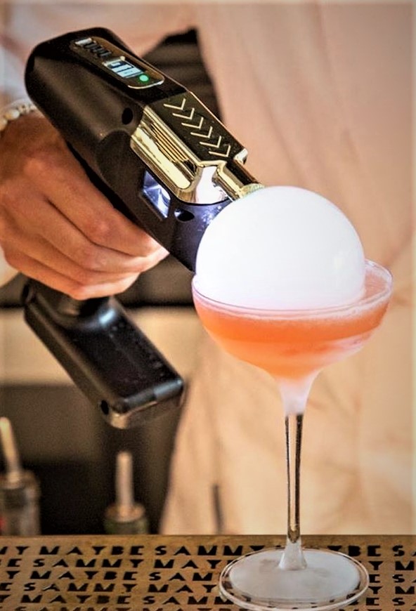 Llena la Smoking Gun con el aroma que prefieras y aprieta el gatillo para crear una nube fragante directamente sobre el cóctel. O sumerge la boquilla en BUBBLE X para crear una burbuja comestible llena de aroma.